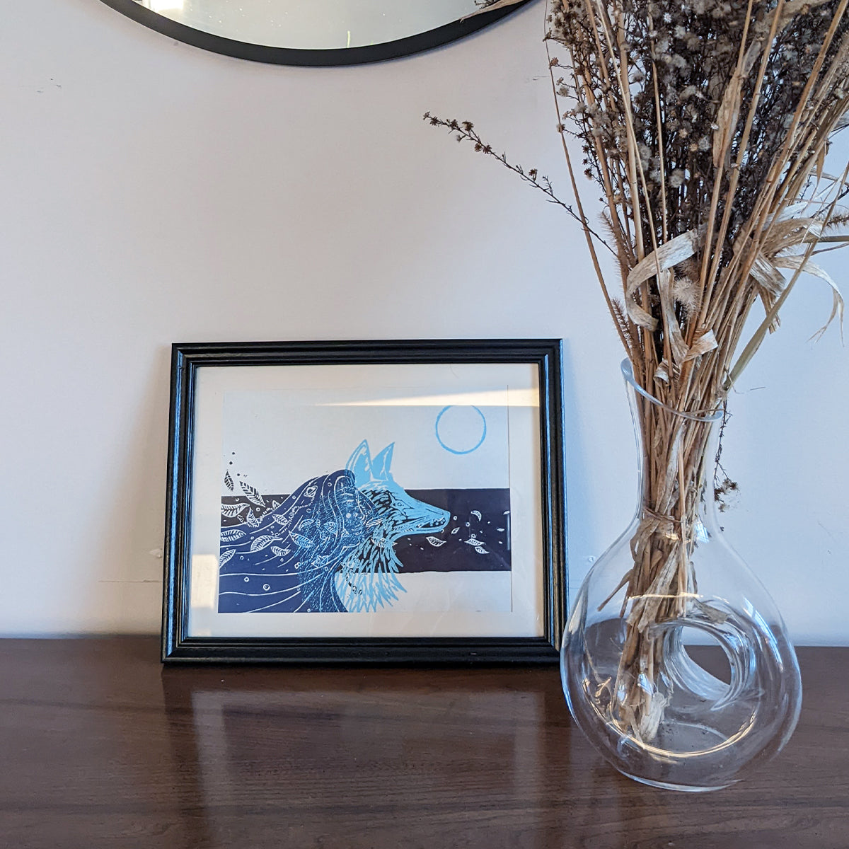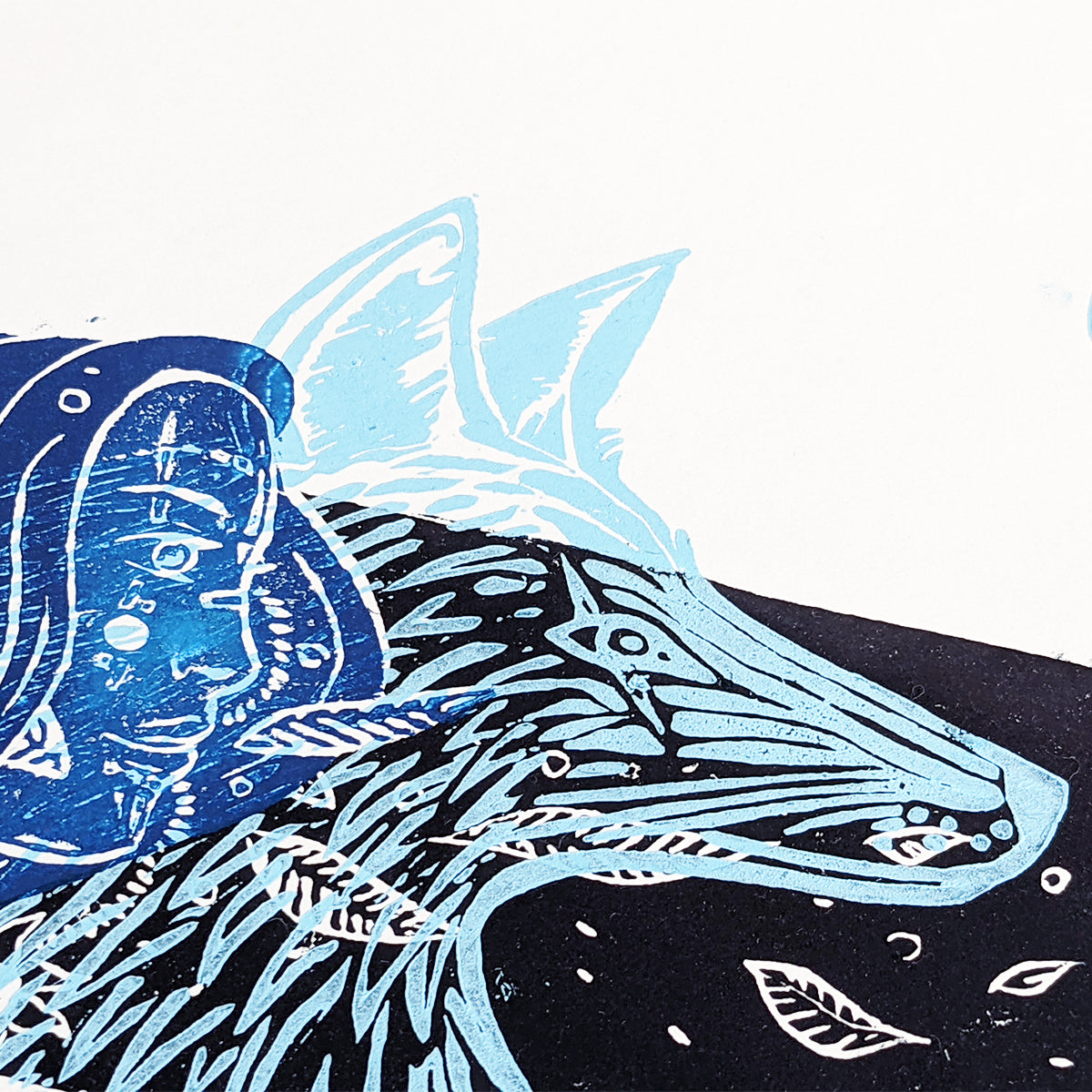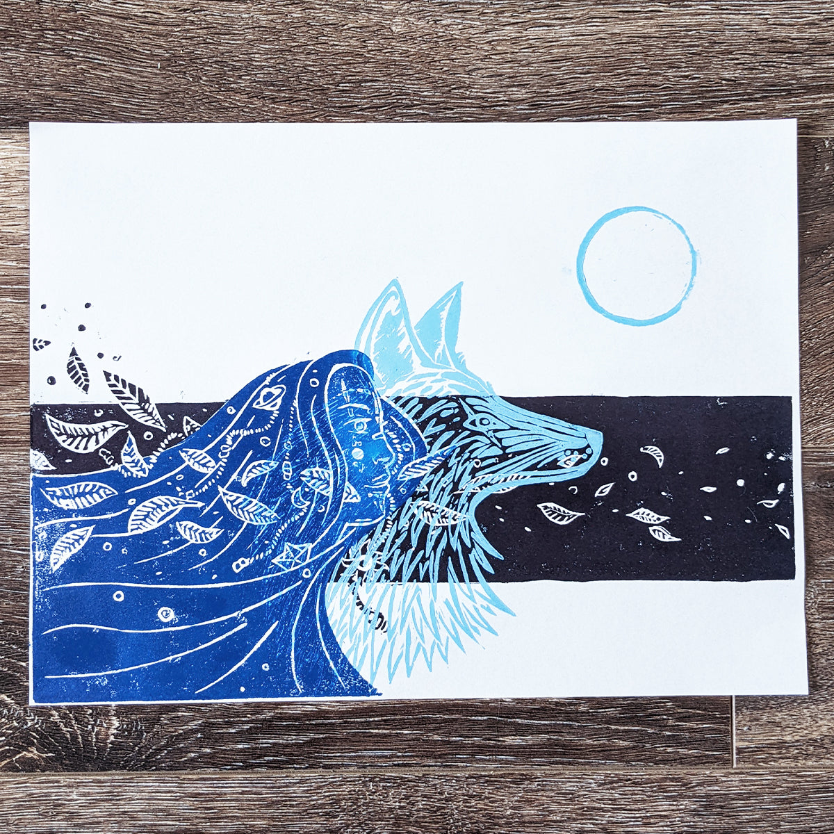 Please note that with the process of linoprinting and because this is an original print made with love by hamd, each piece of art can be slightly different, that is what makes it unique.