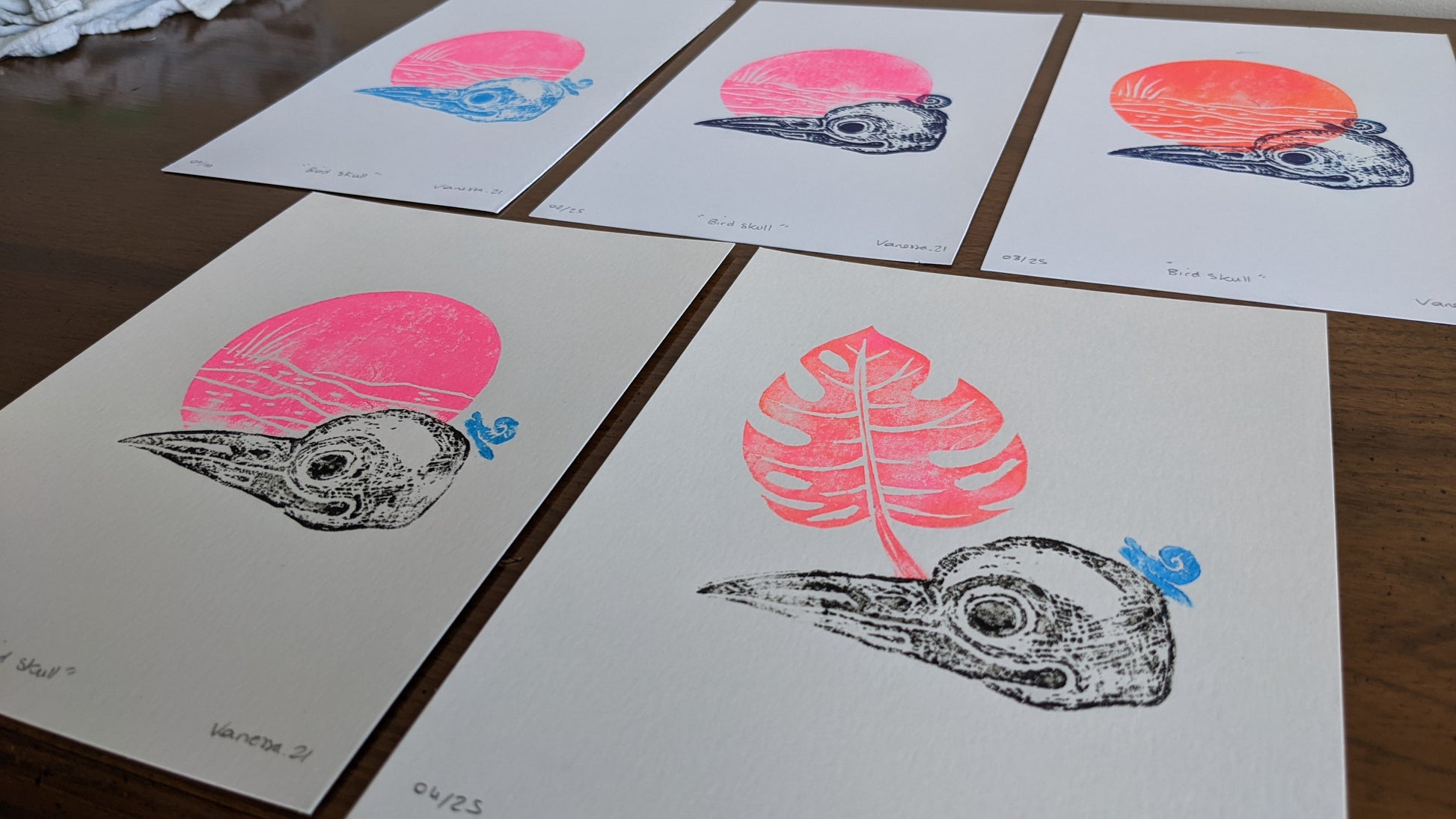 Please note that with the process of linoprinting and because this is an original print made with love, each piece of art can be slightly different, that is what makes it unique.
