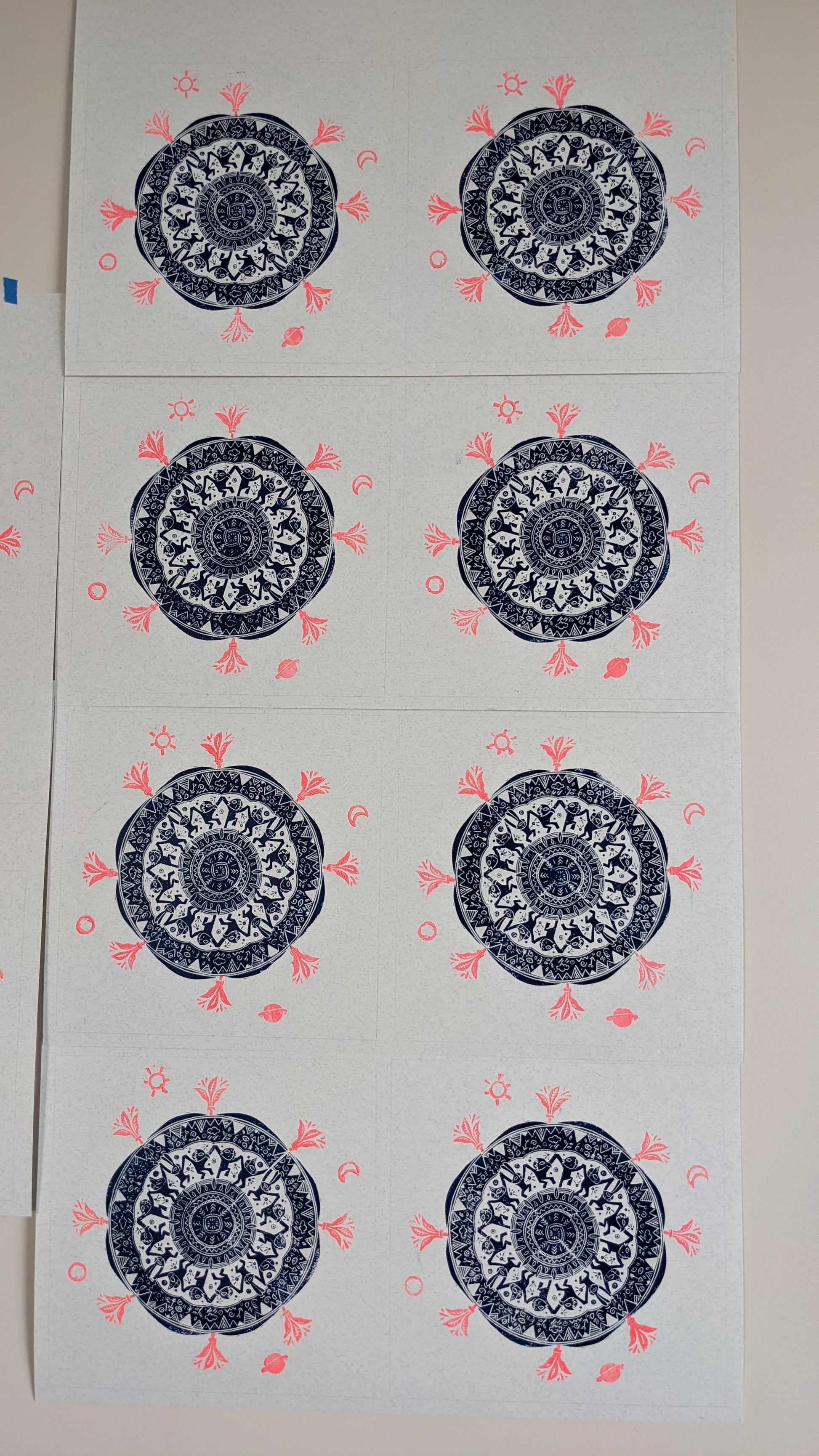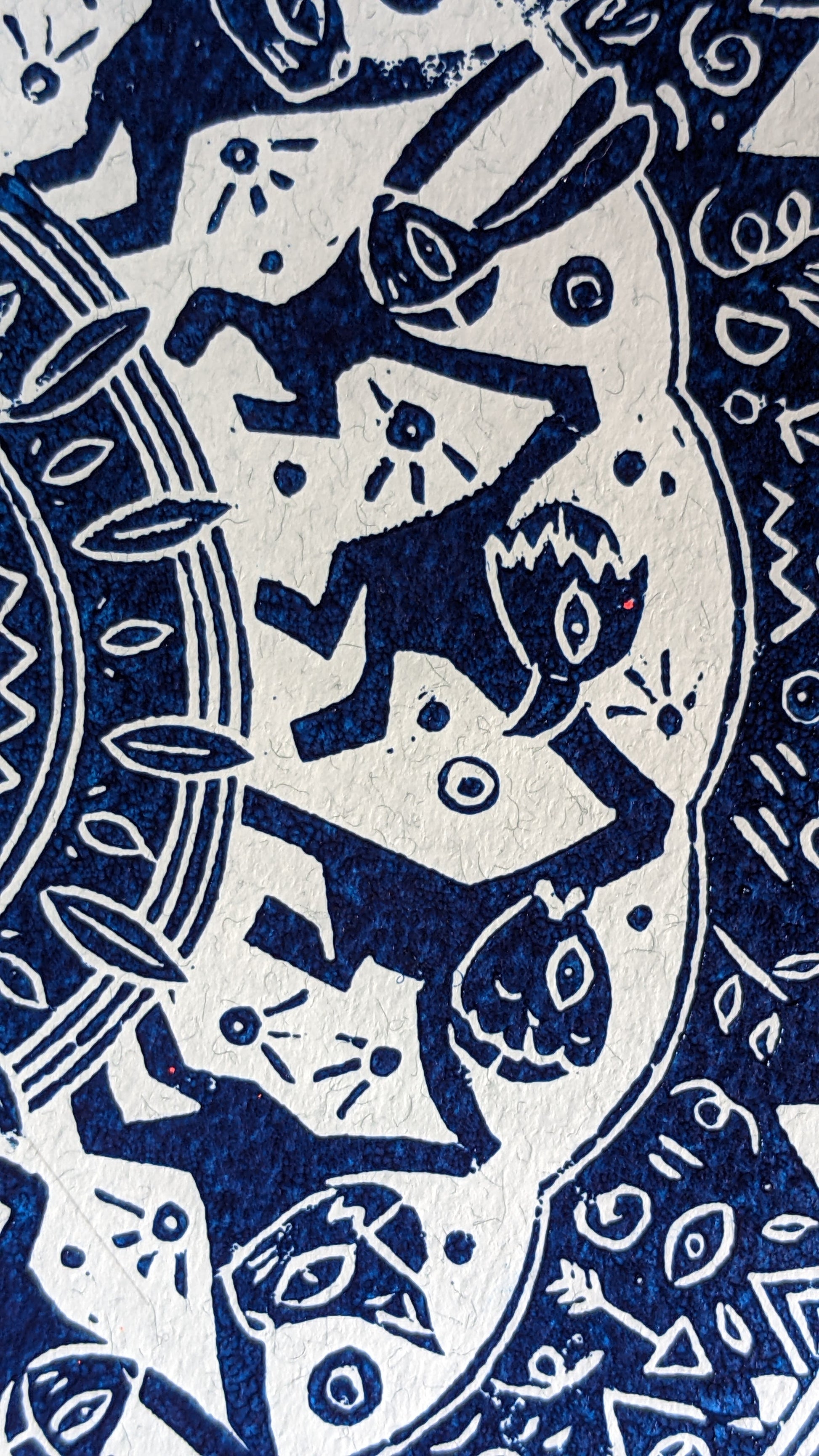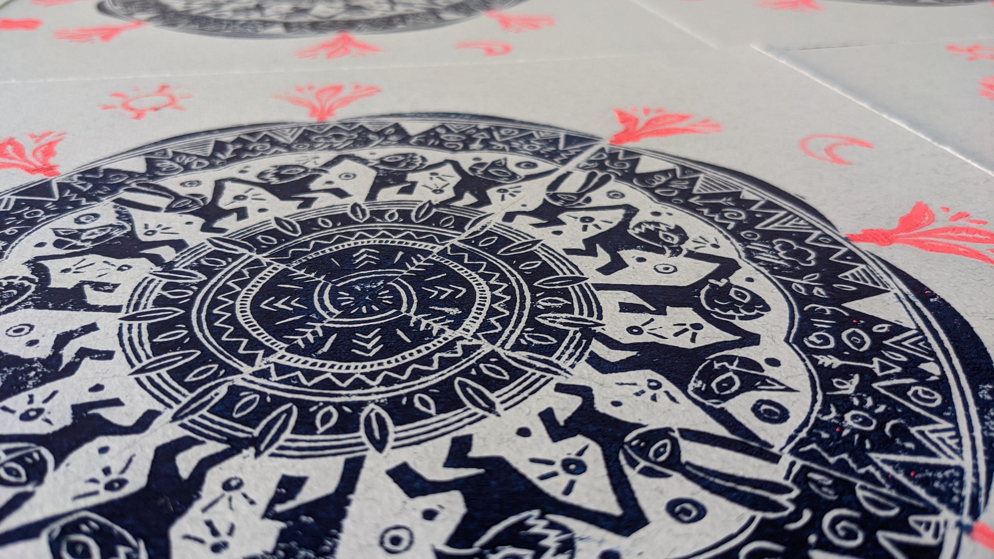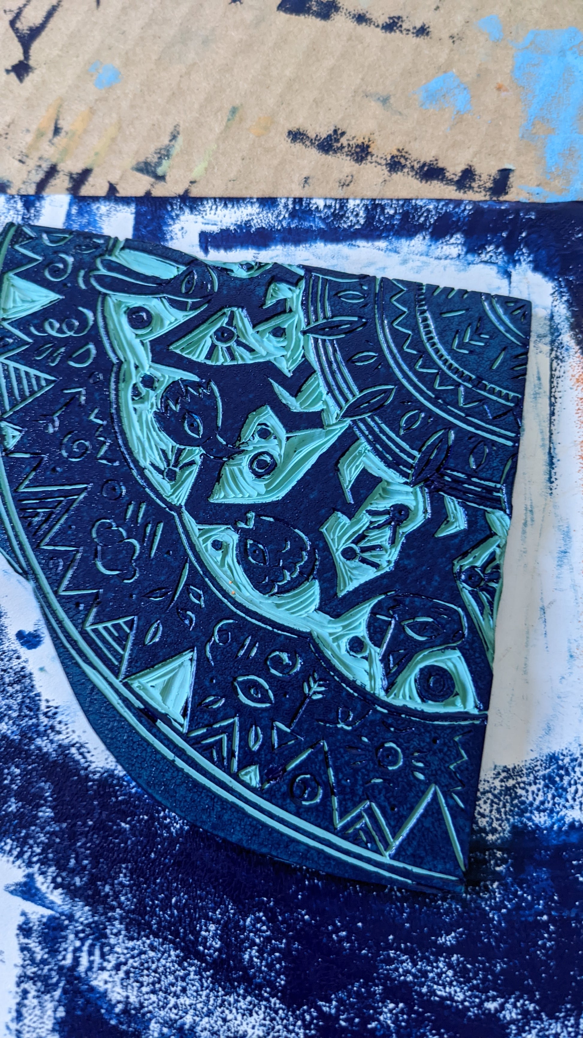 Linoprint, framed Oil on cotton paper, 12x12in, only 10 available