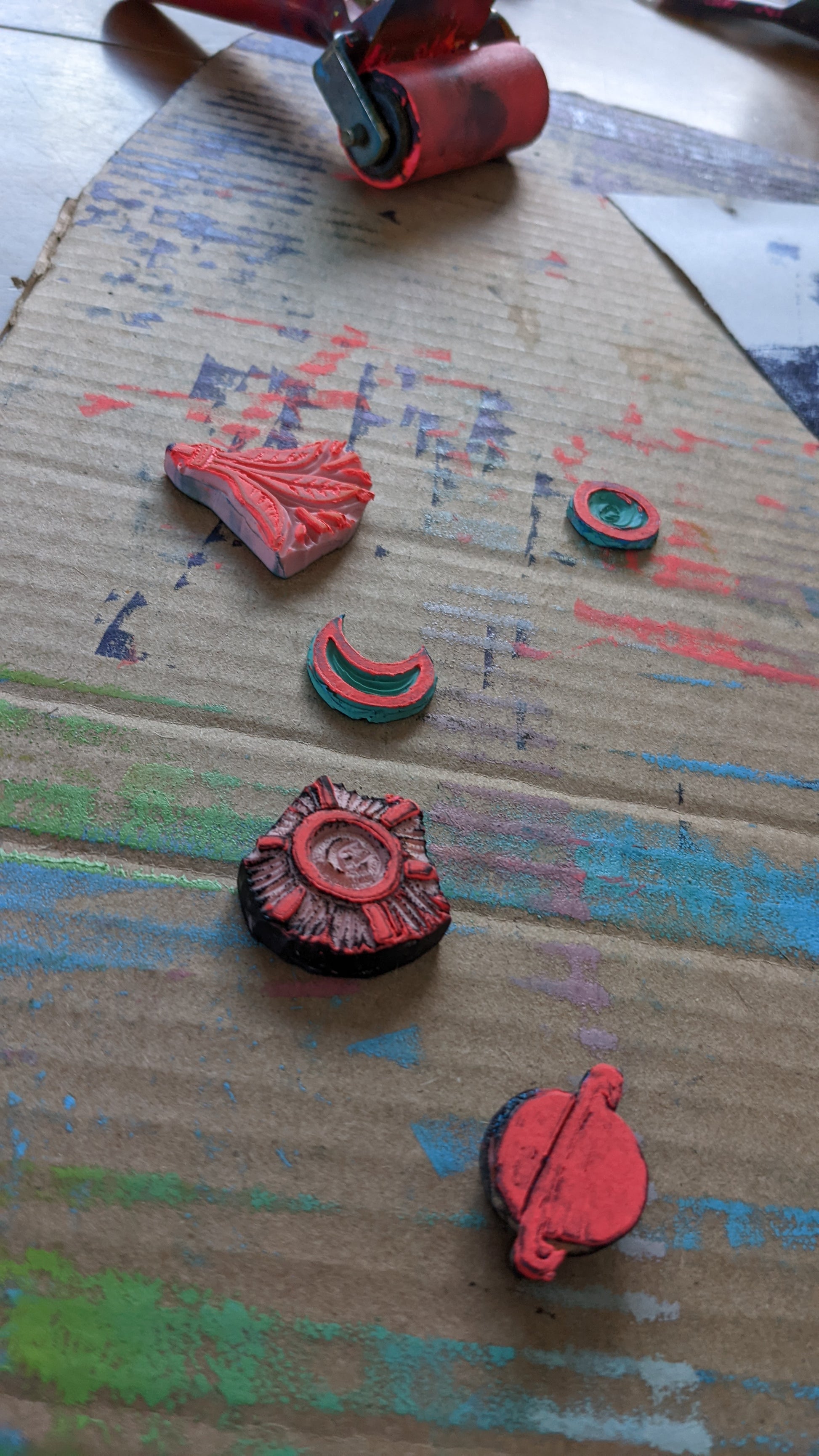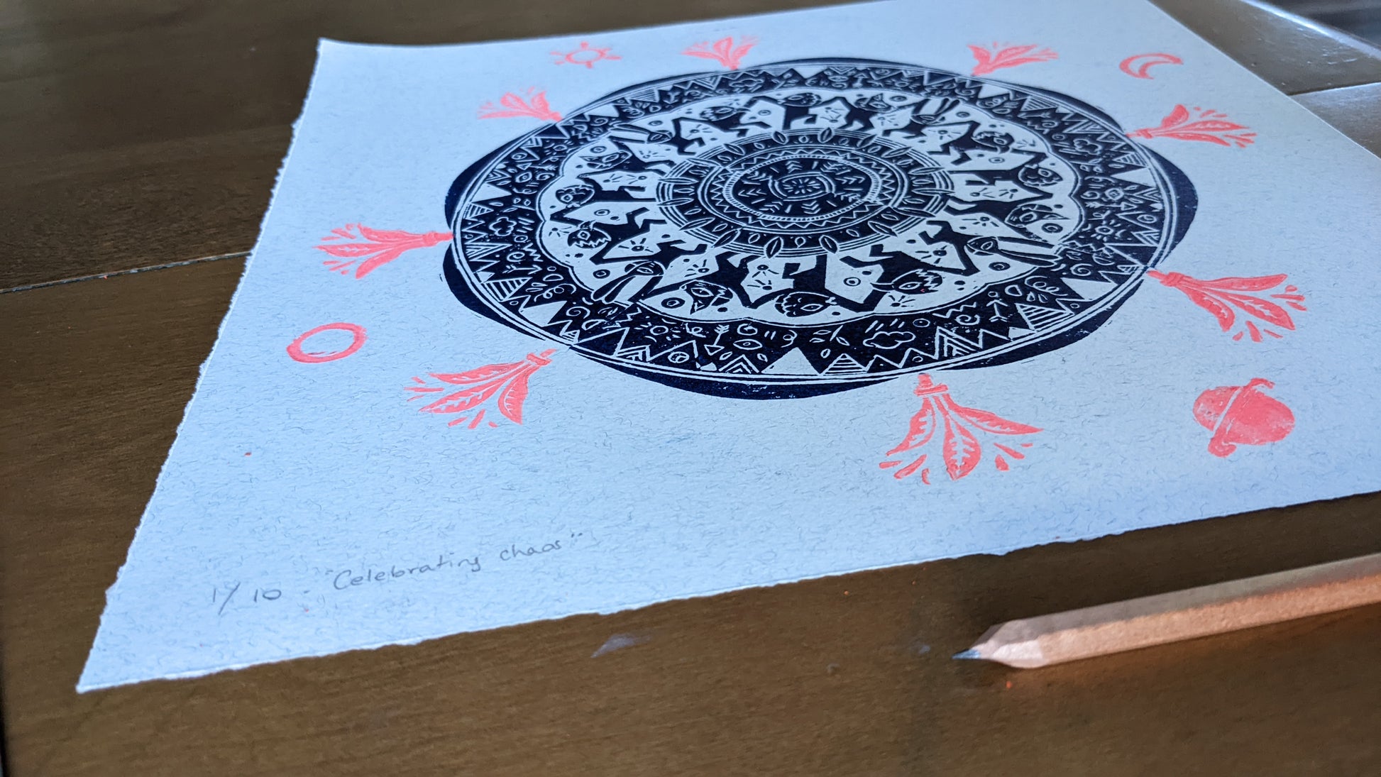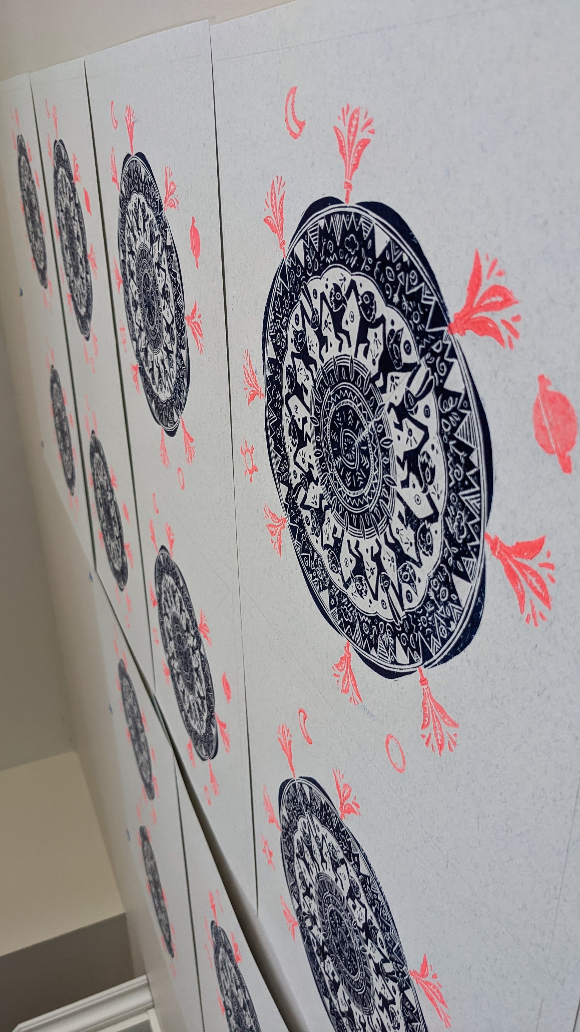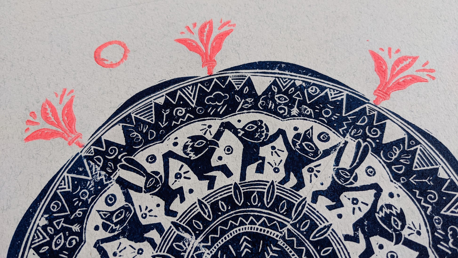 Linoprint, framed Oil on cotton paper, 12x12in, only 10 available