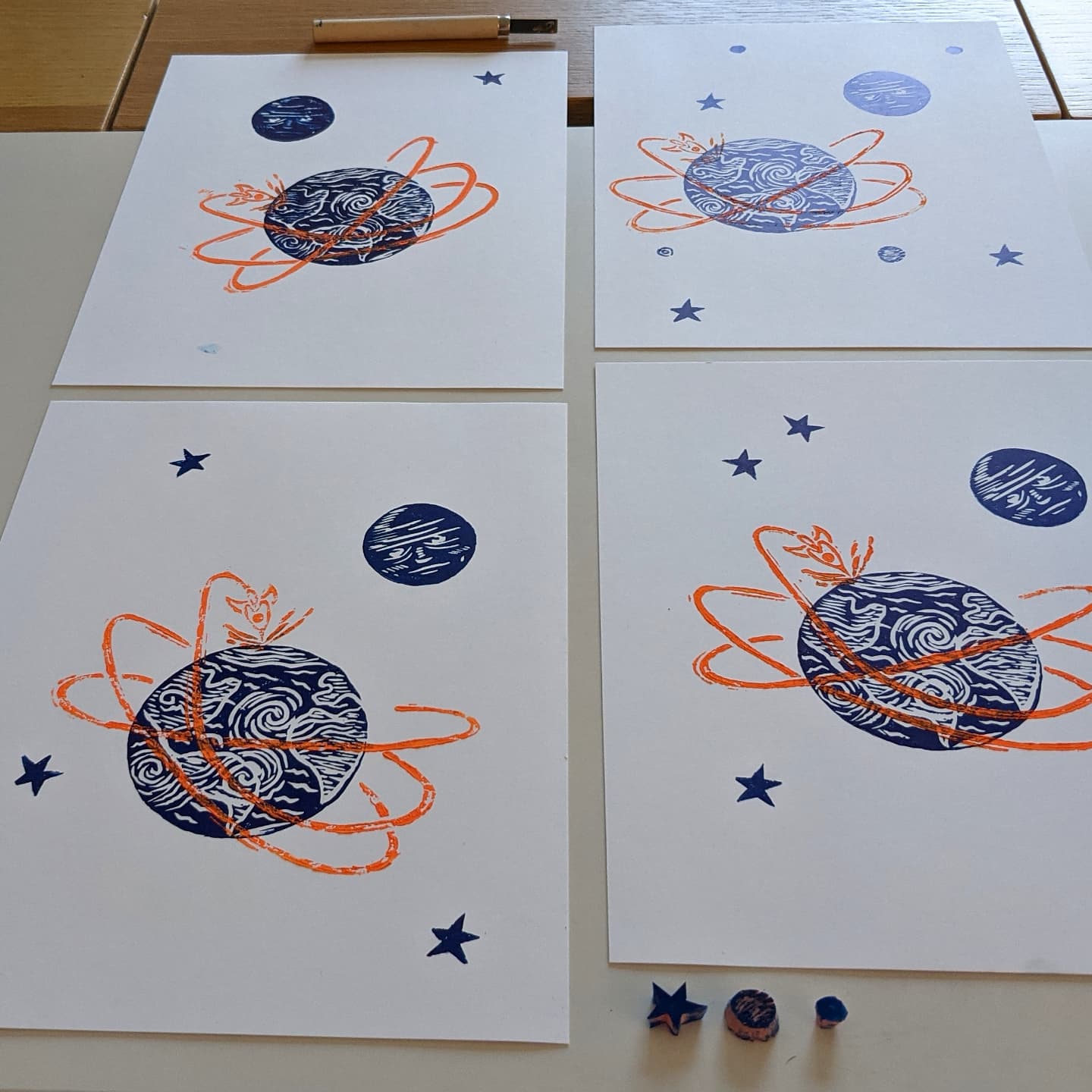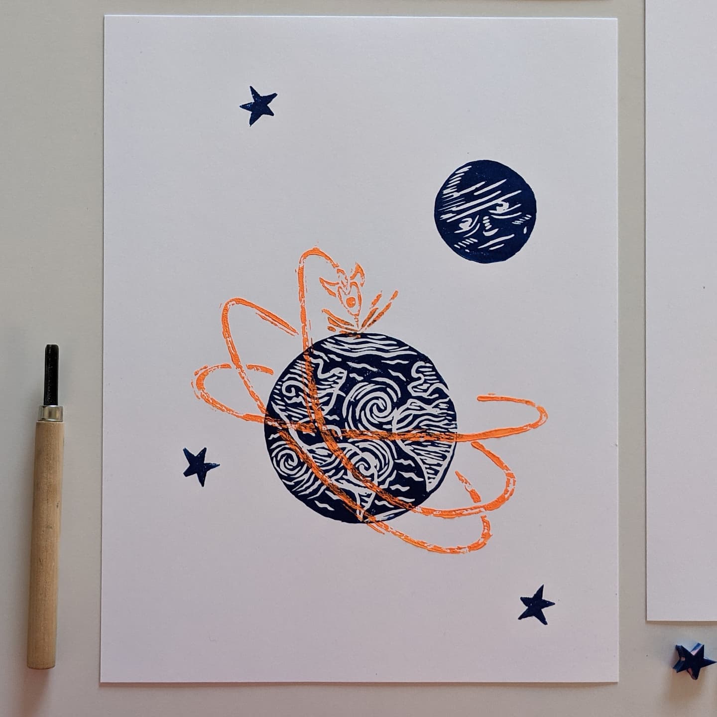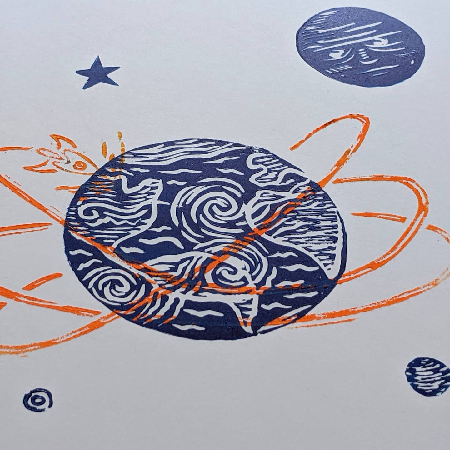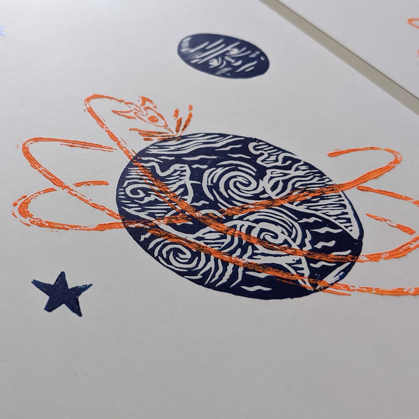 Please note that with the process of linoprinting and because this is an original print made with love, each piece of art can be slightly different, that is what makes it unique.