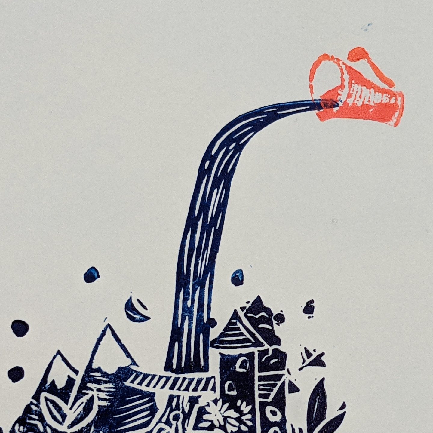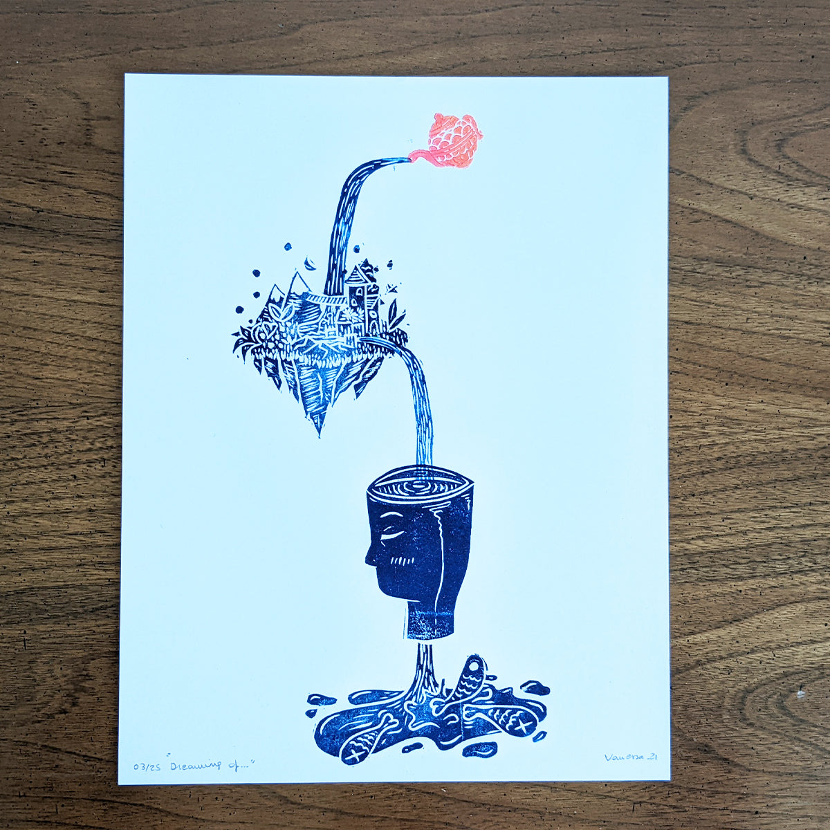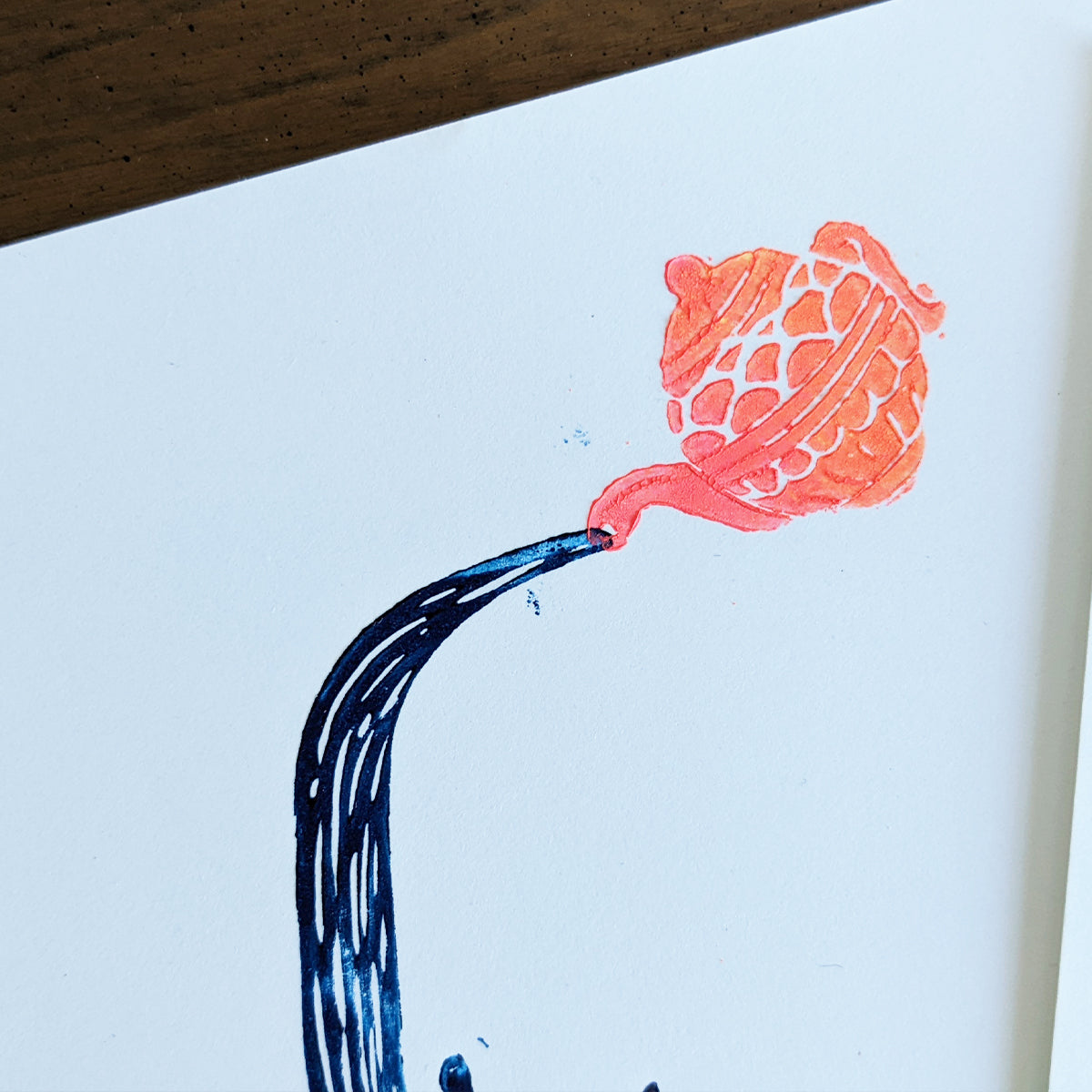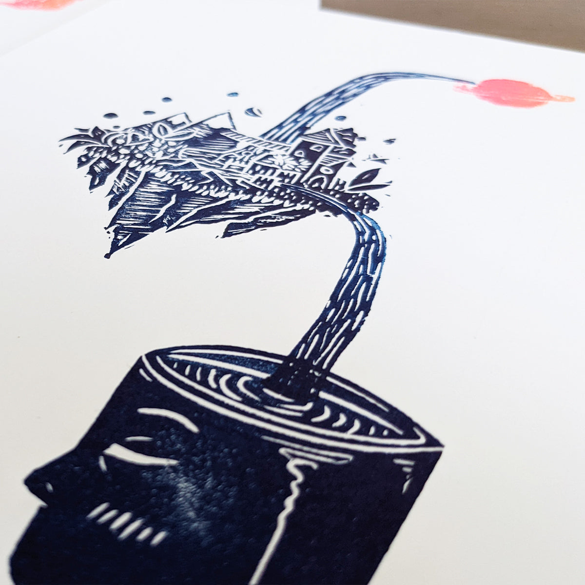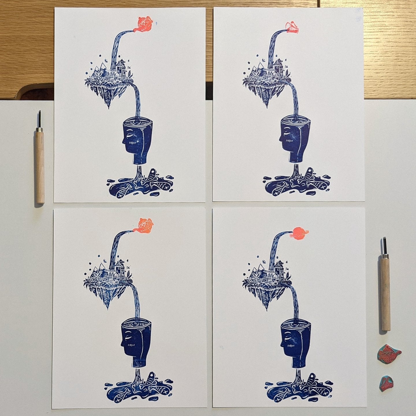 Please note that with the process of linoprinting and because this is an original print made with love, each piece of art can be slightly different, that is what makes it unique.