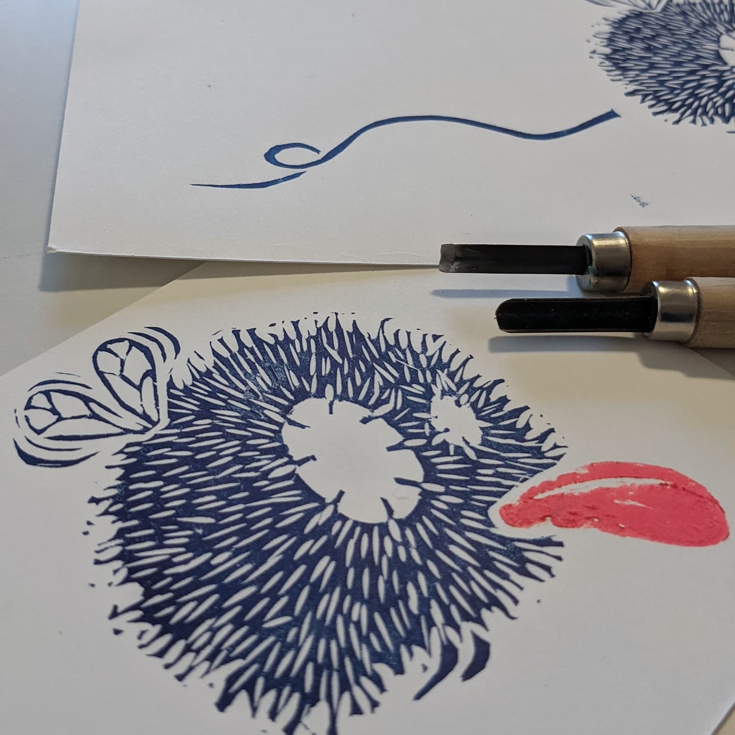 Please note that with the process of linoprinting and because this is an original print made with love, each piece of art can be slightly different, that is what makes it unique.