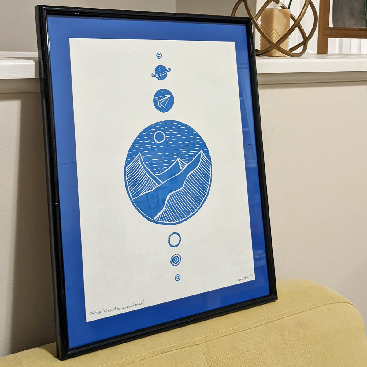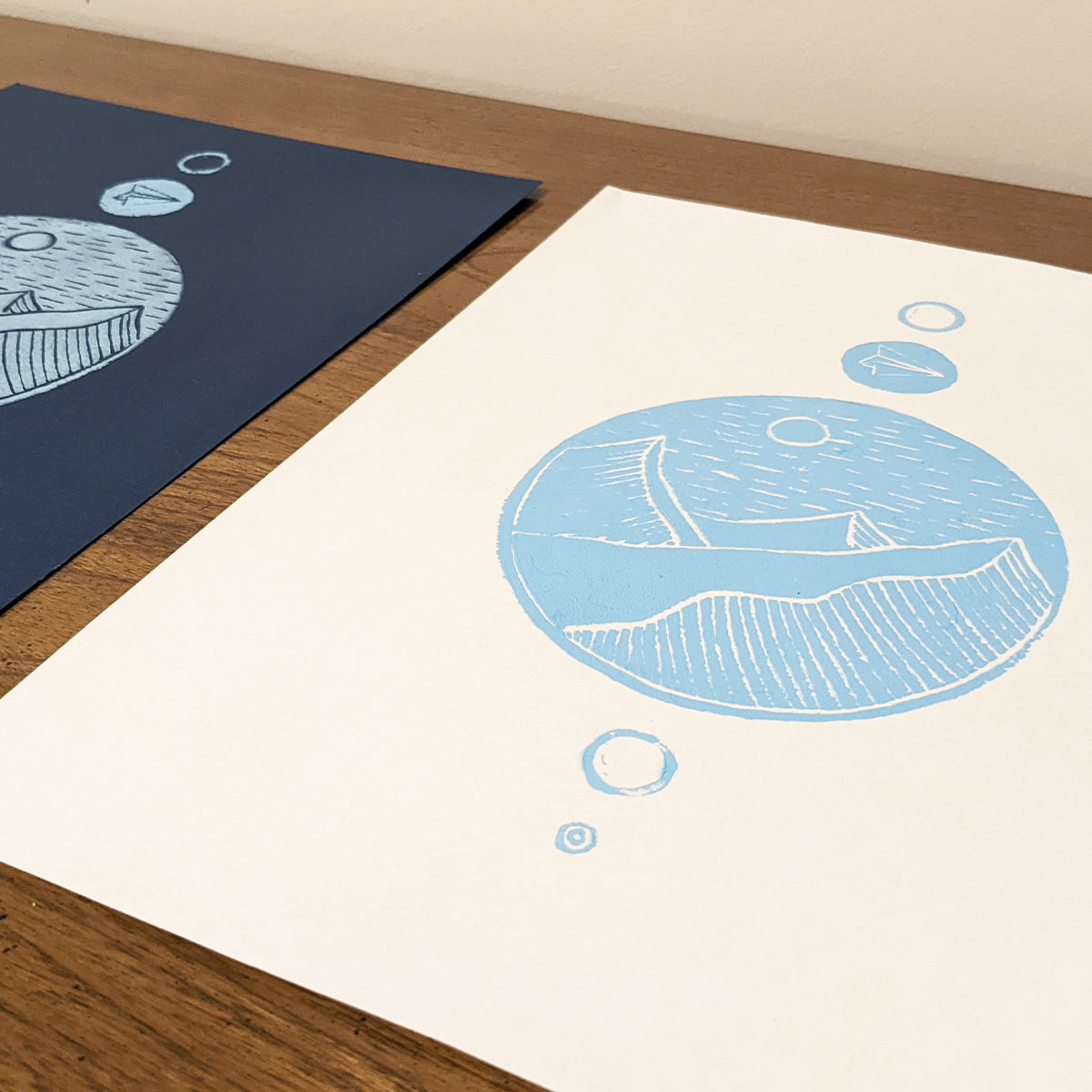Please note that with the process of linoprinting and because this is an original print made with love by hand, each piece of art can be slightly different, that is what makes it unique.