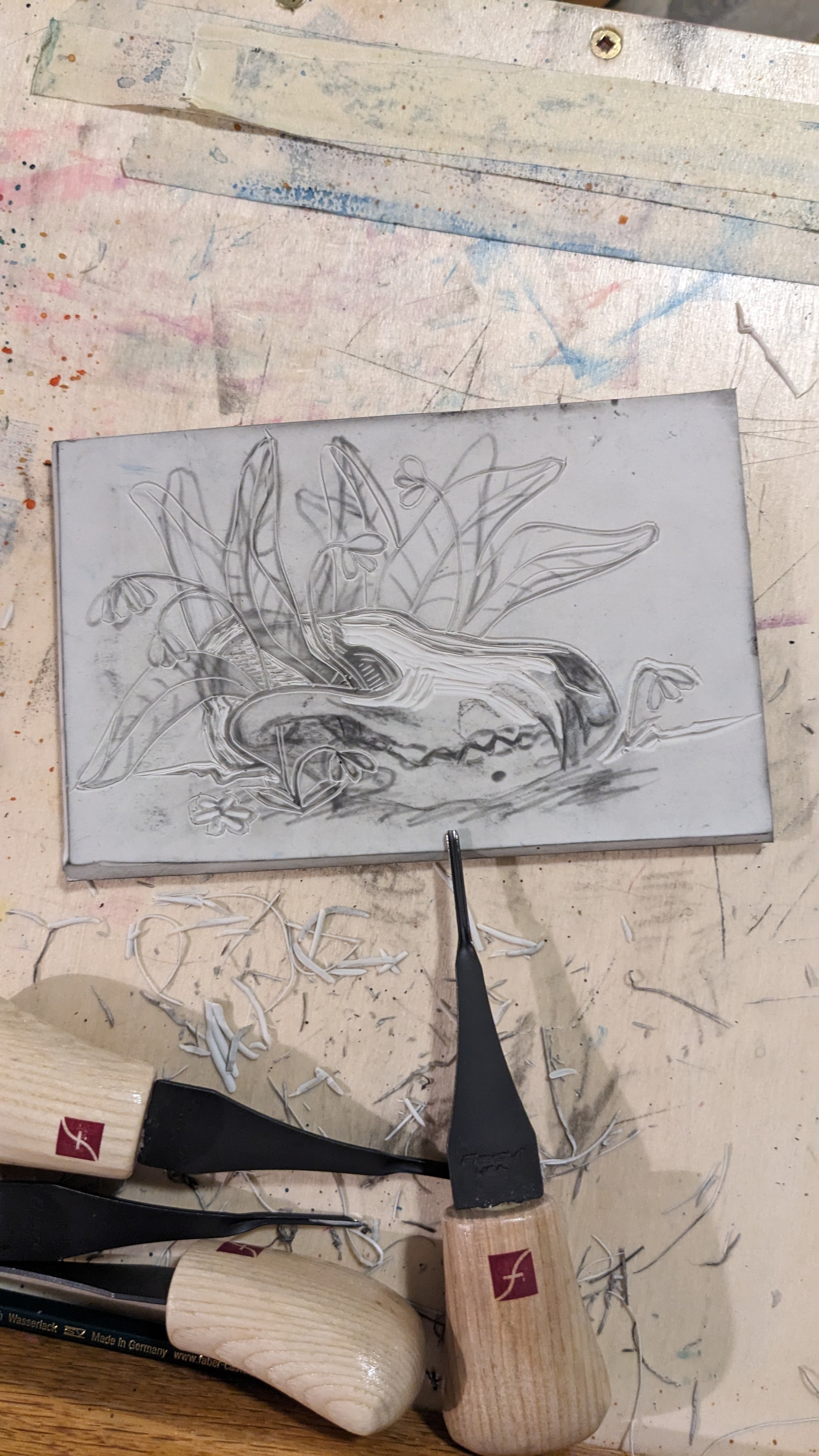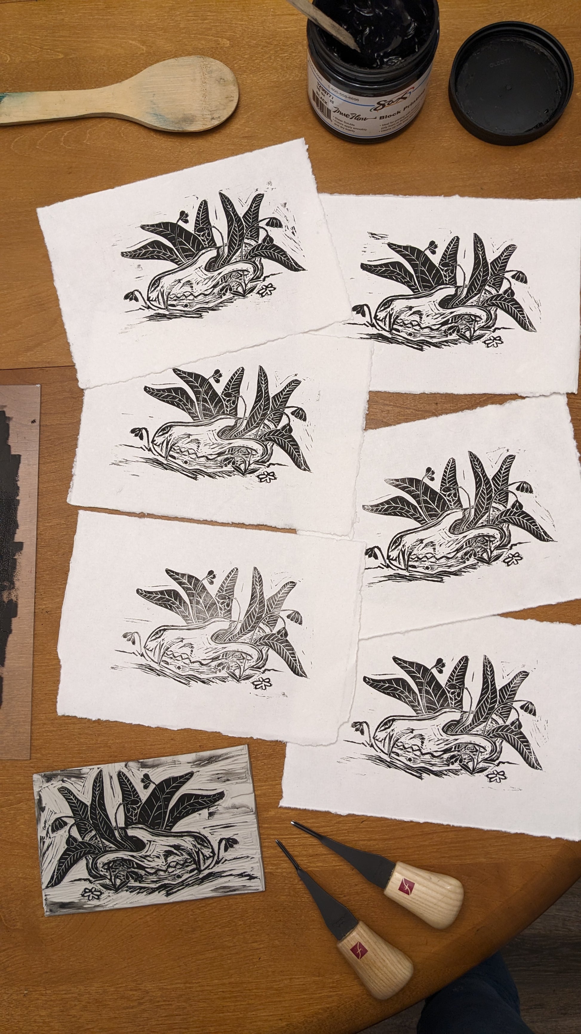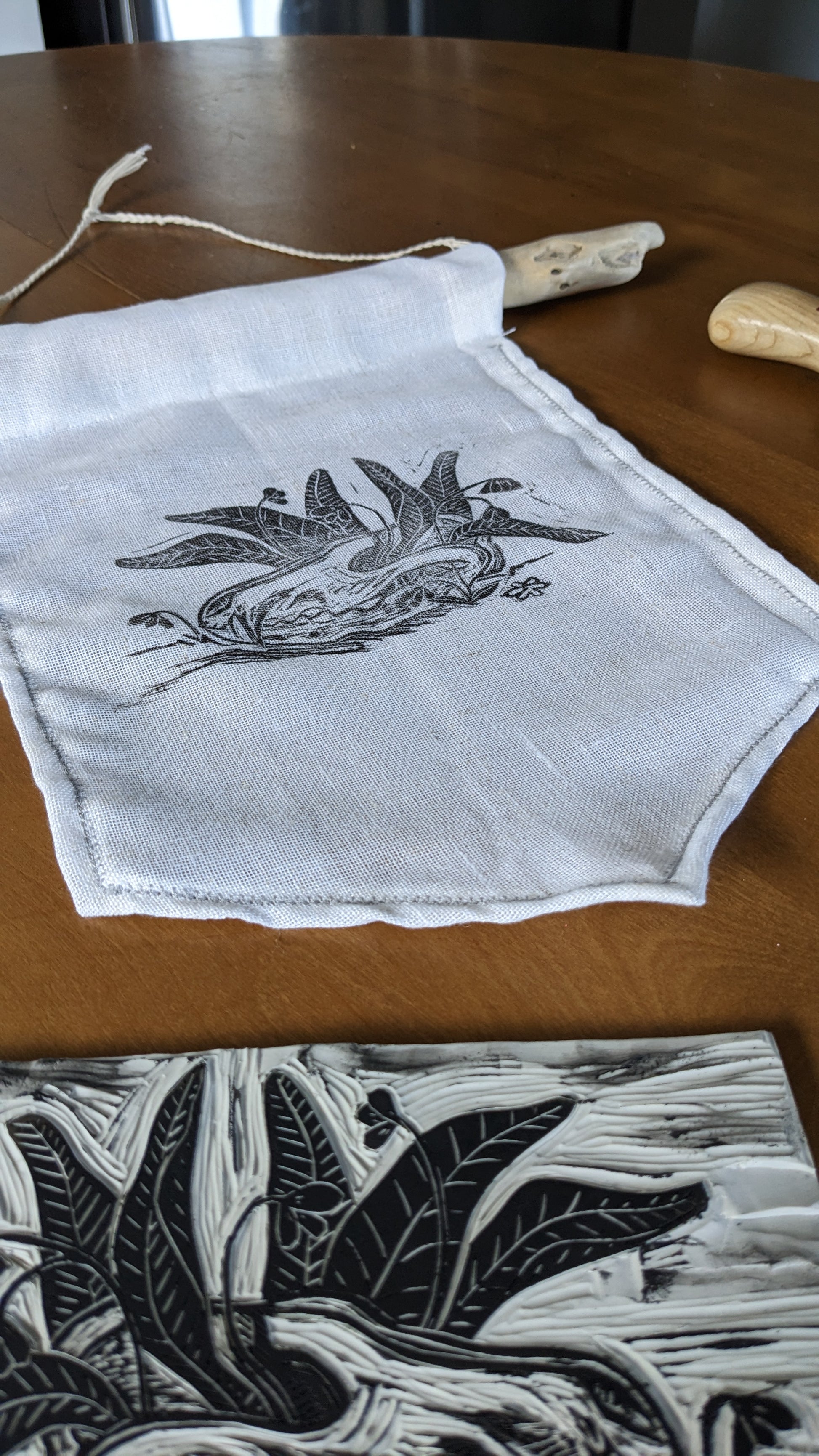 Original numbered linoprint on handmade paper or hand crafted flag (with driftwood and braided string).