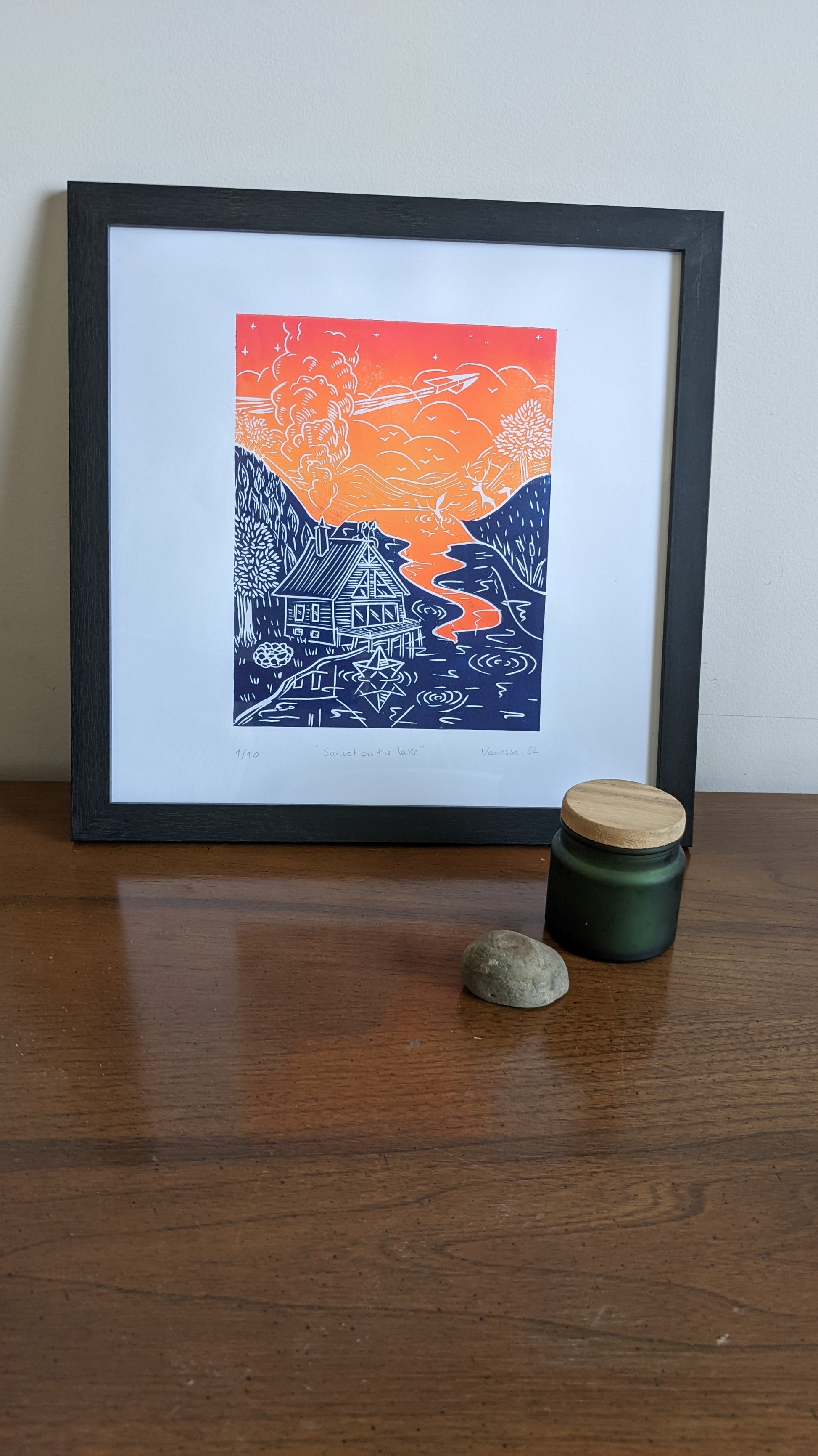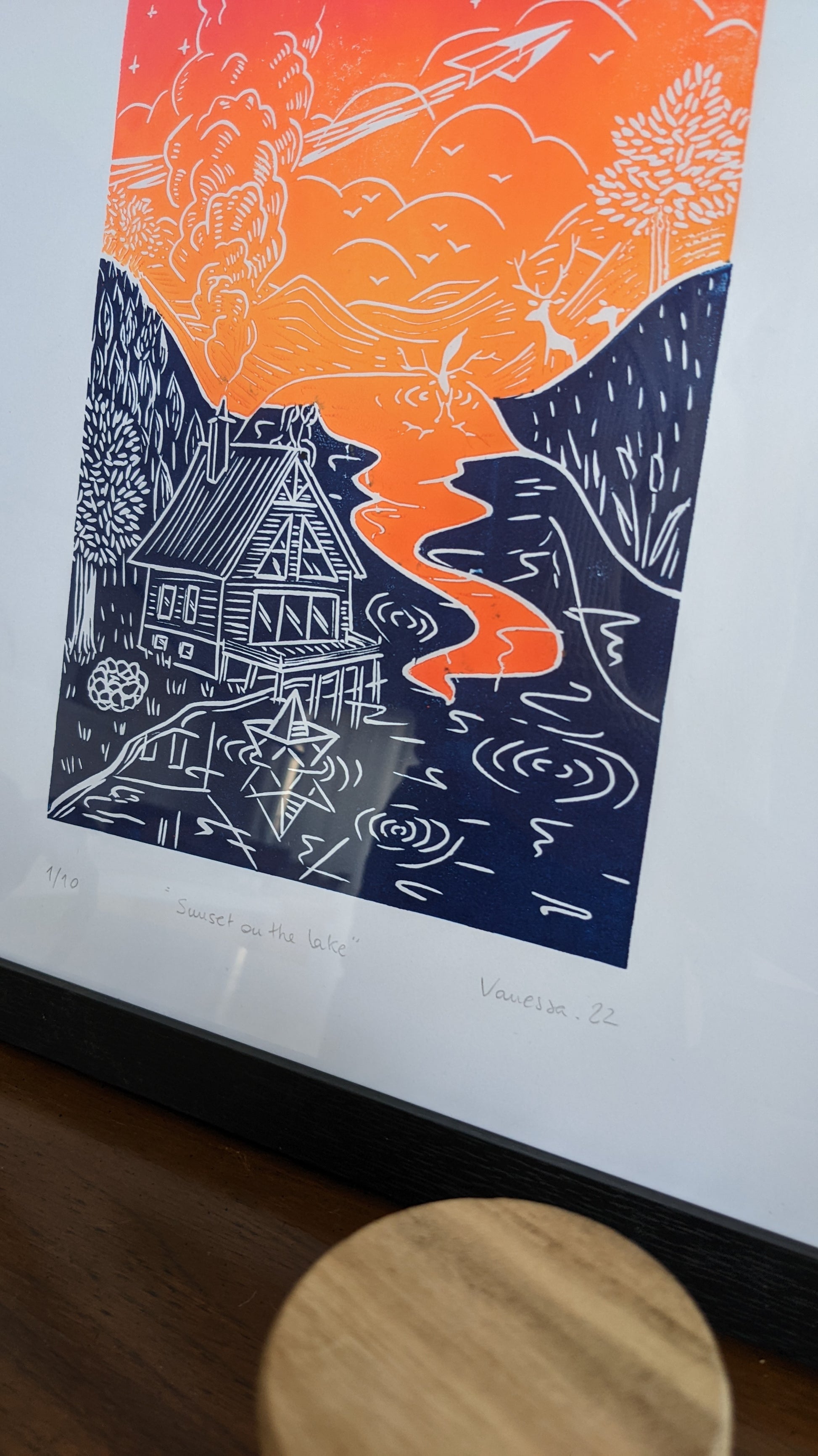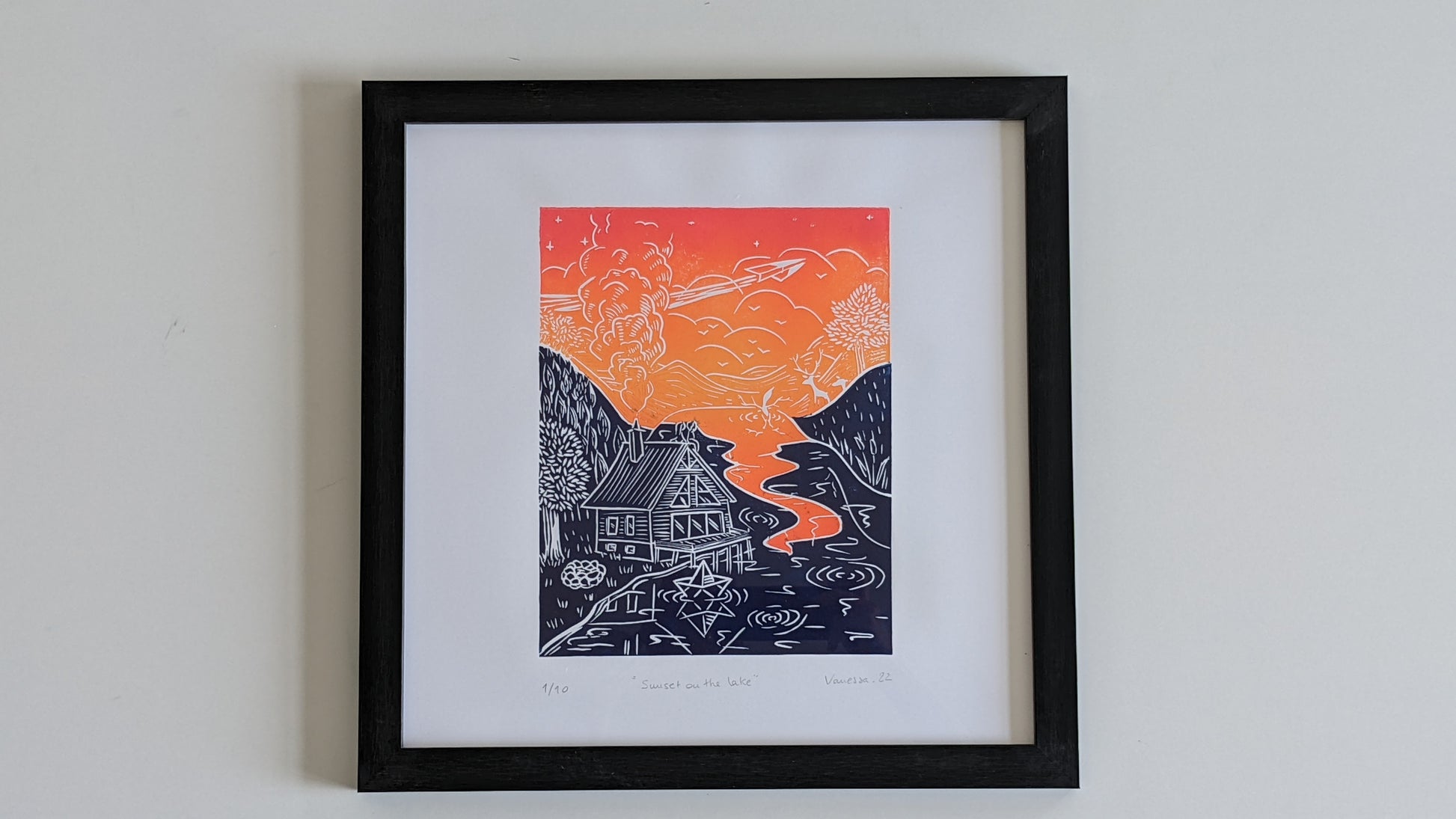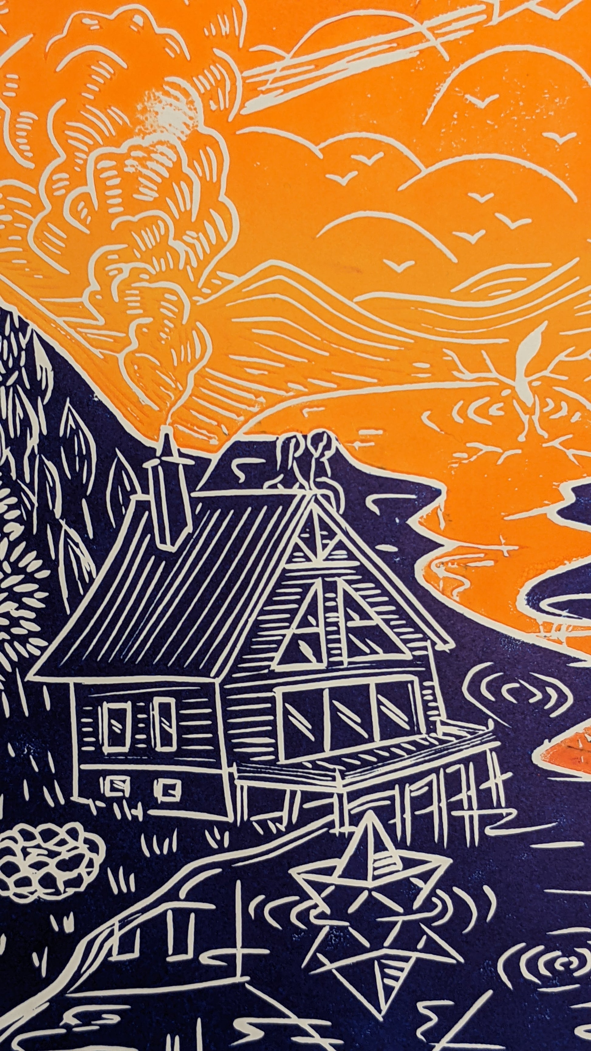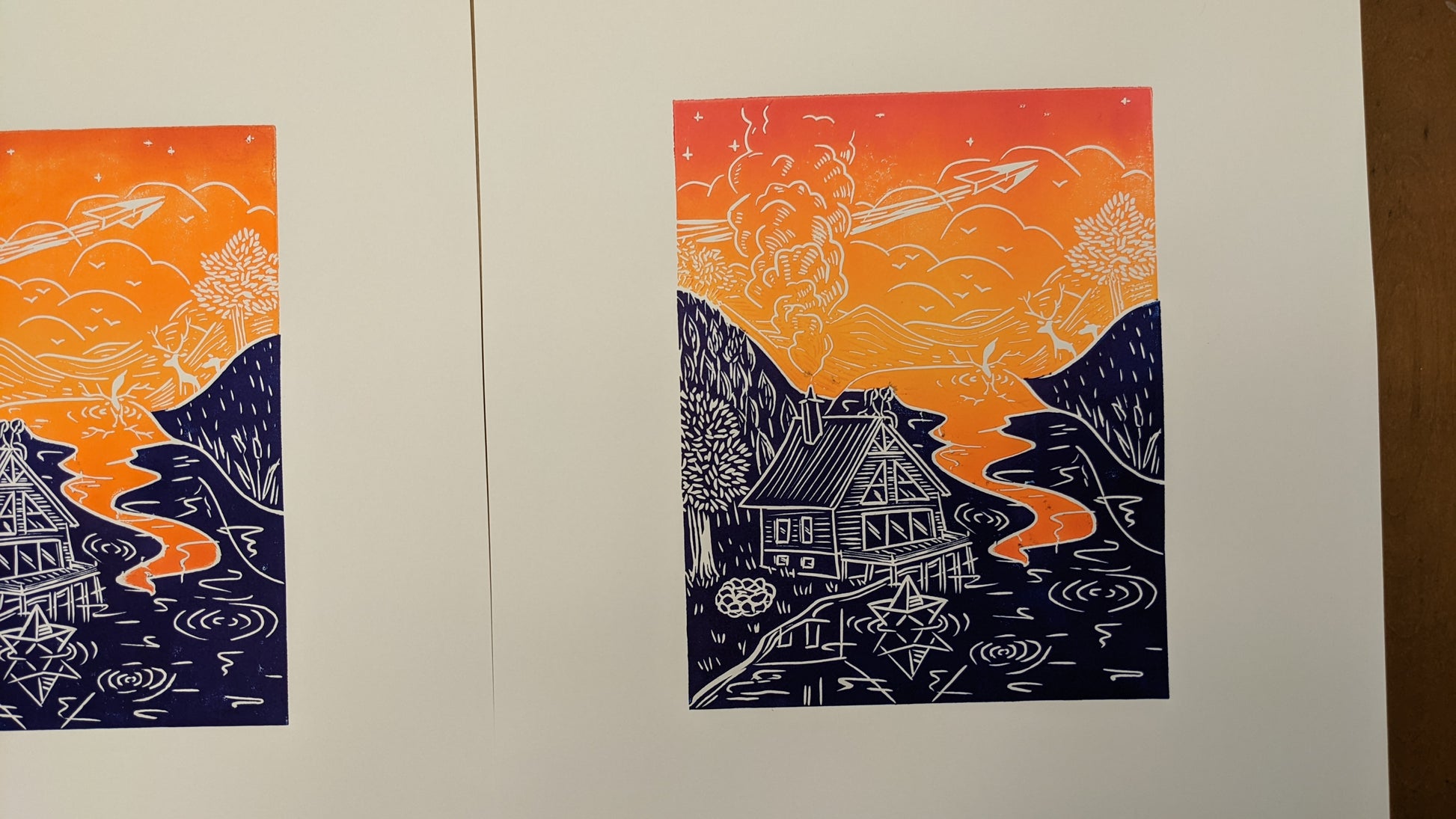 Please note that with the process of linoprinting and because this is an original print made with love, each piece of art can be slightly different, that is what makes it unique.