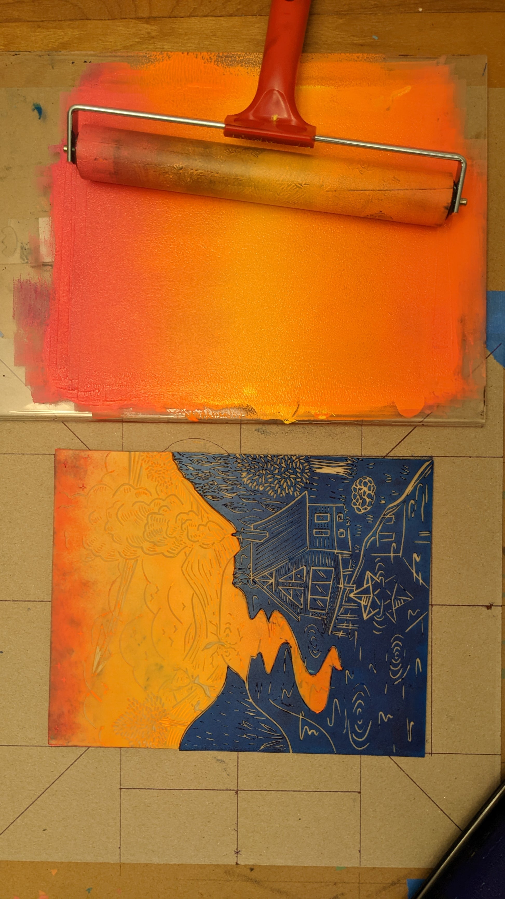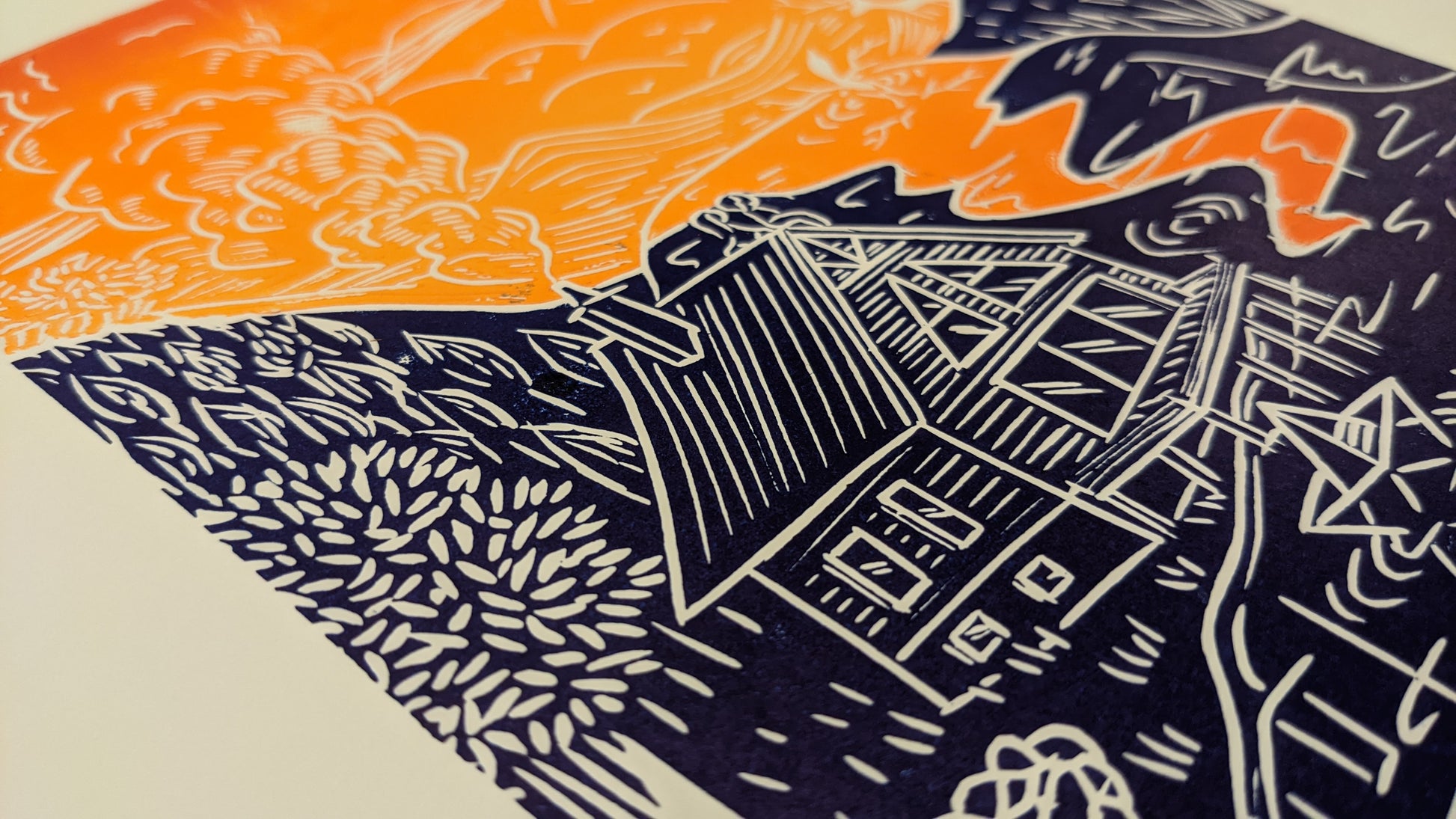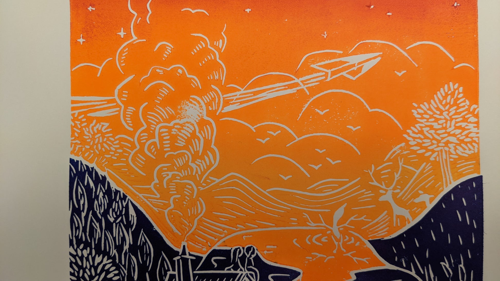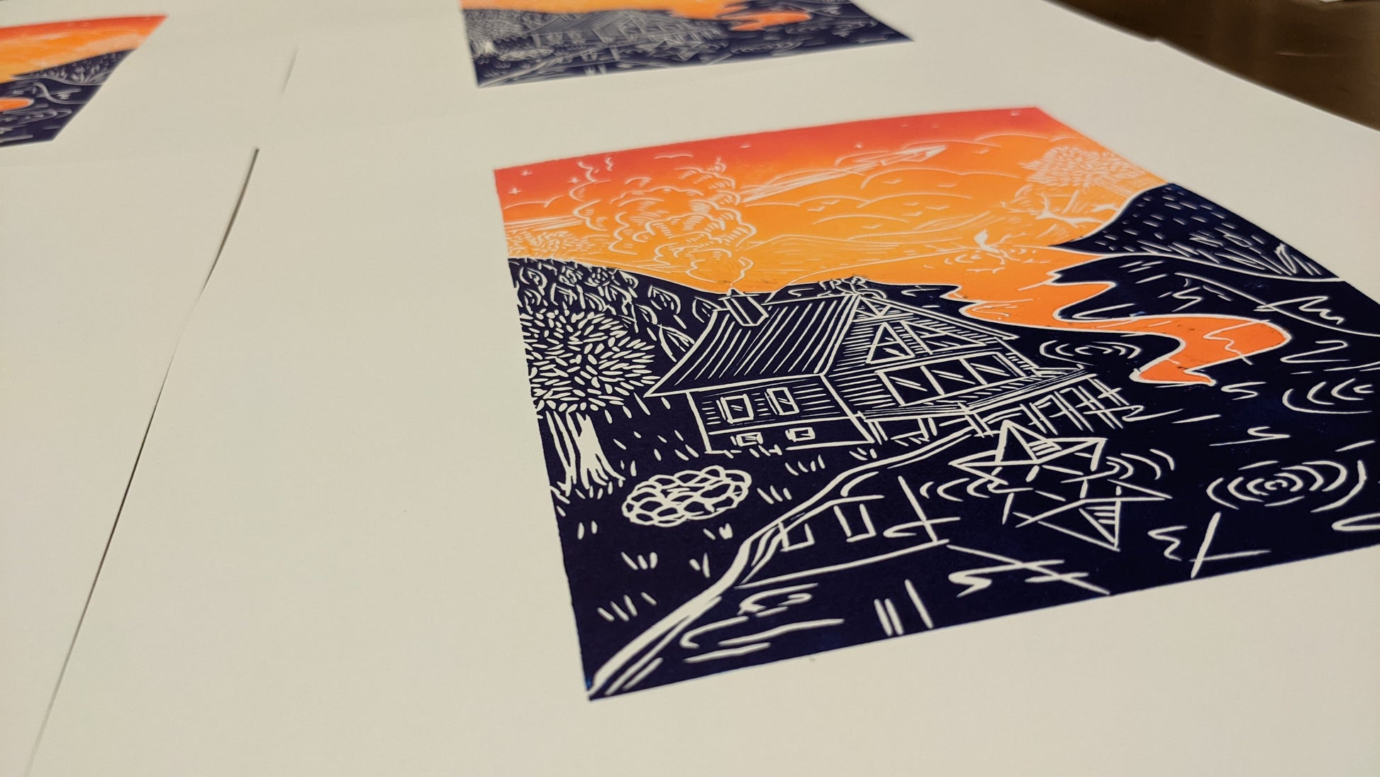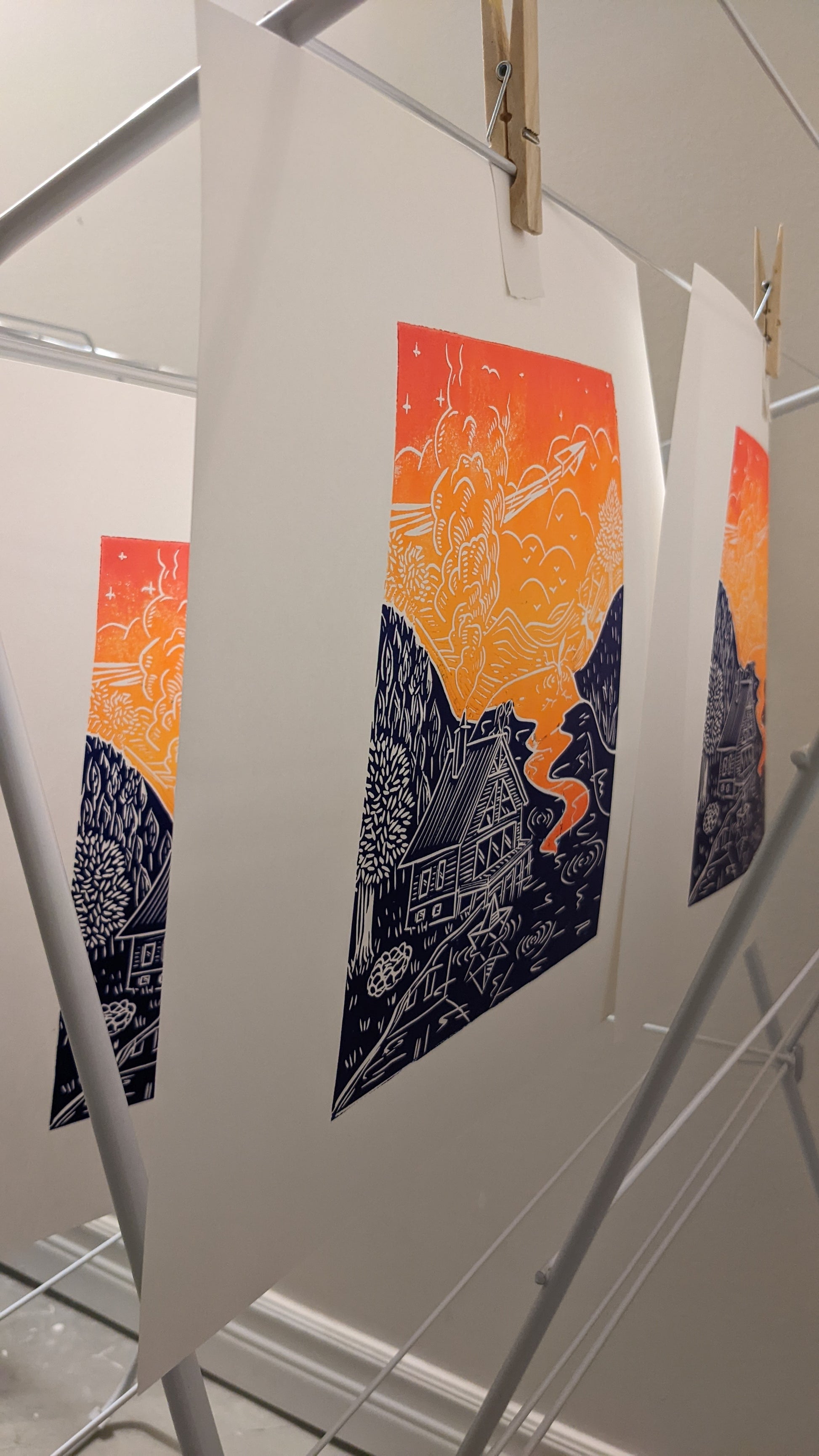 Please note that with the process of linoprinting and because this is an original print made with love, each piece of art can be slightly different, that is what makes it unique.