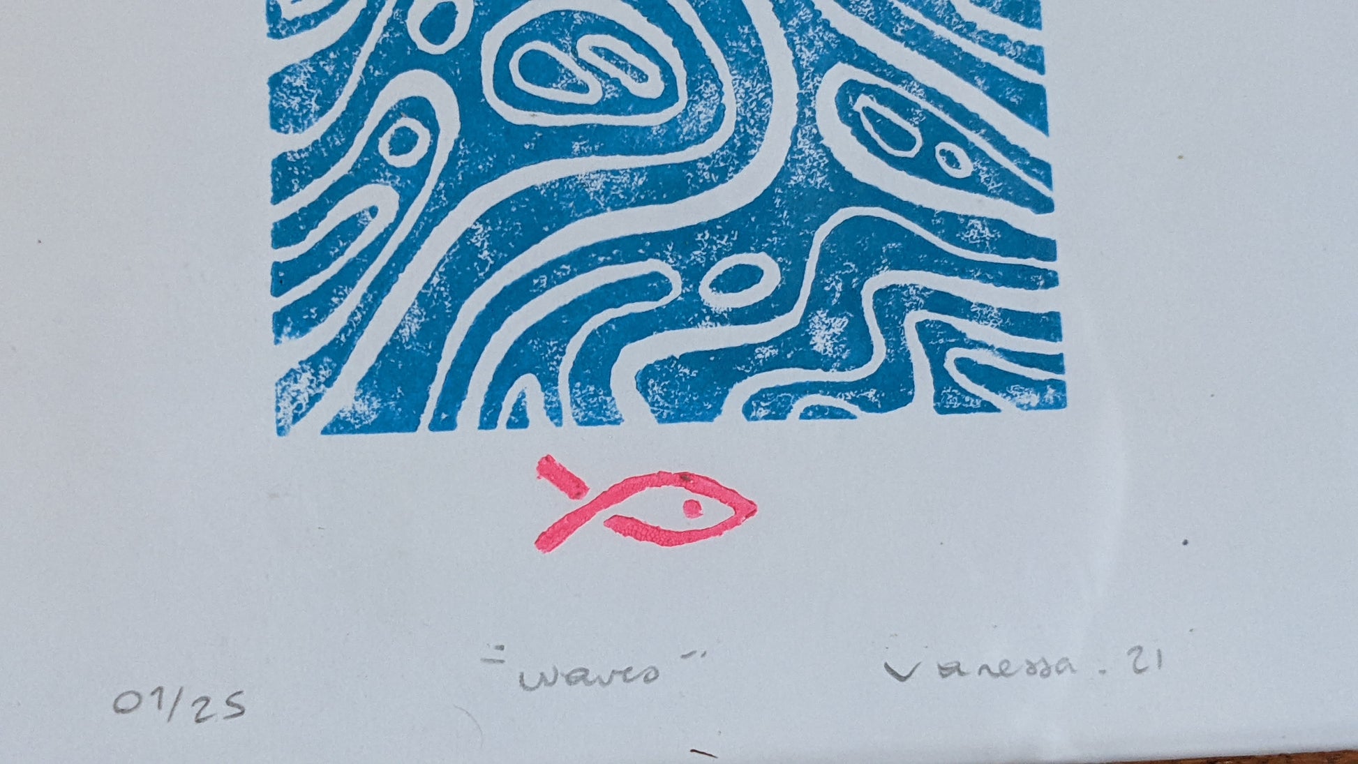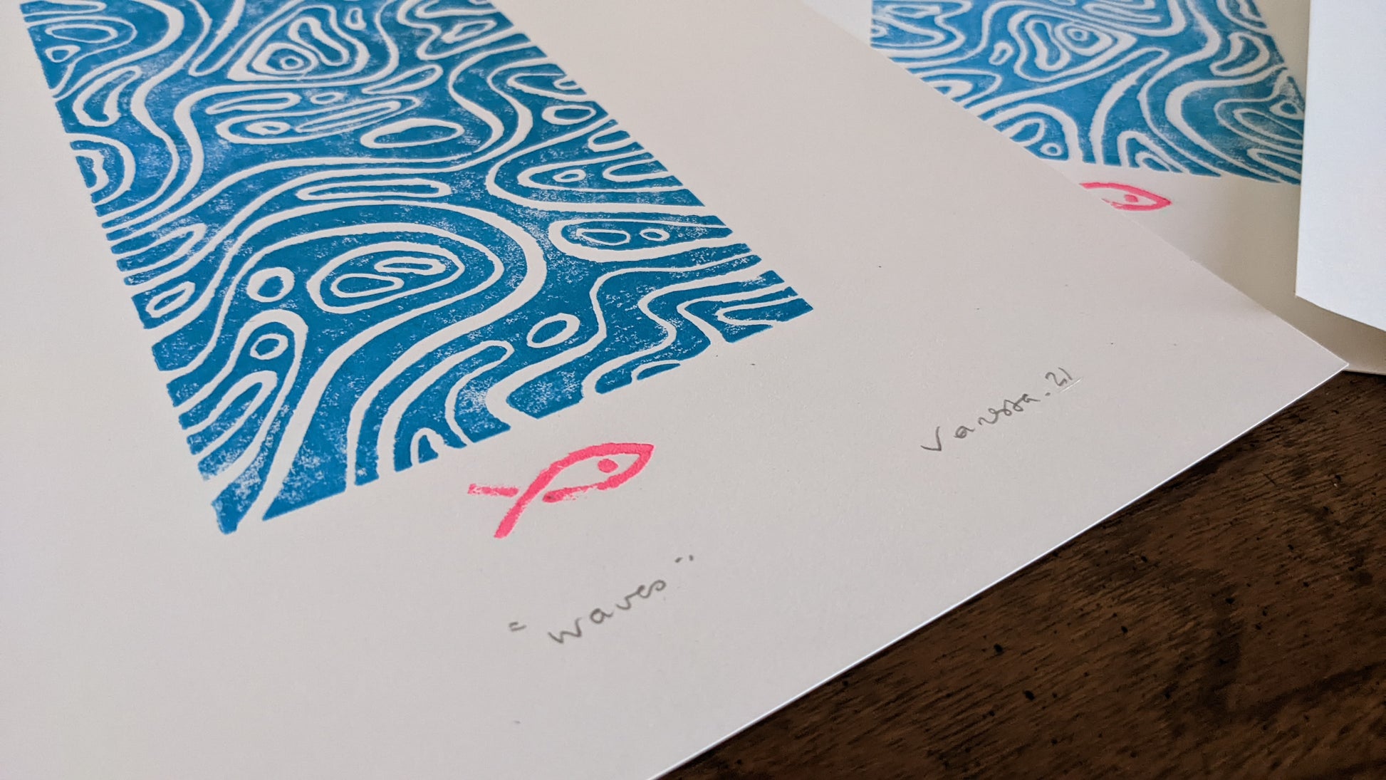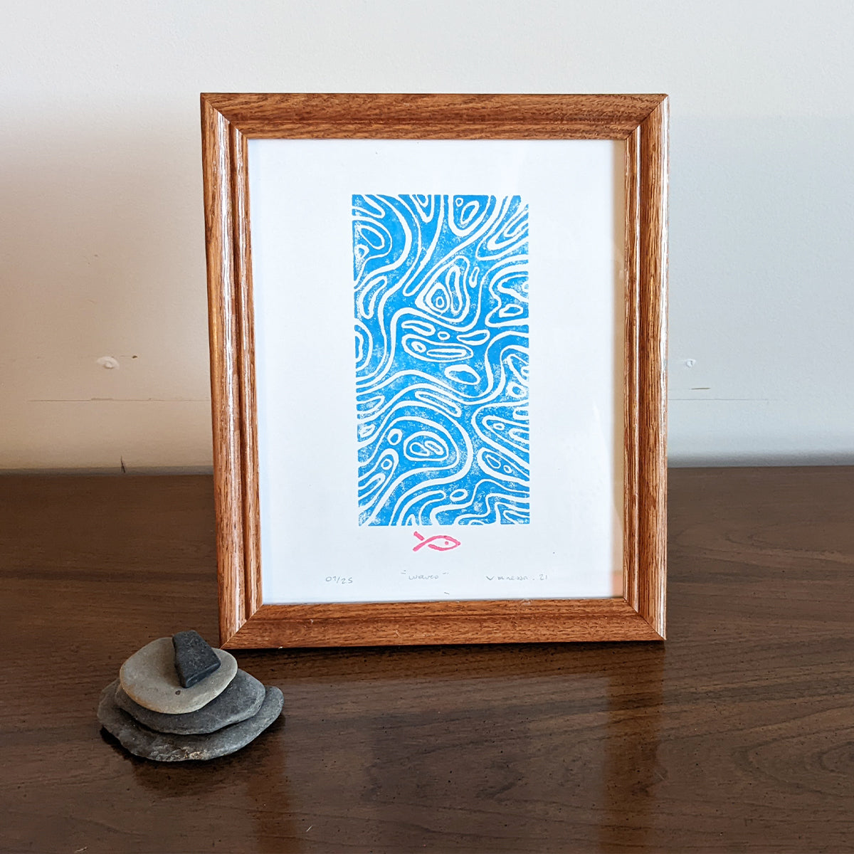 Please note that with the process of linoprinting and because this is an original print made with love, each piece of art can be slightly different, that is what makes it unique.